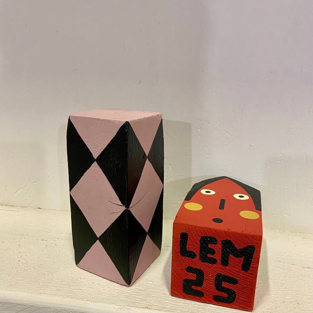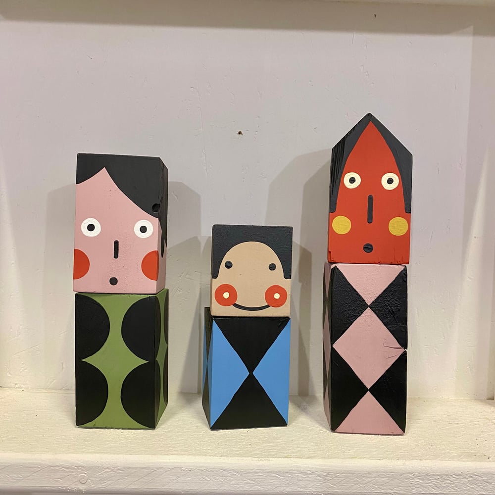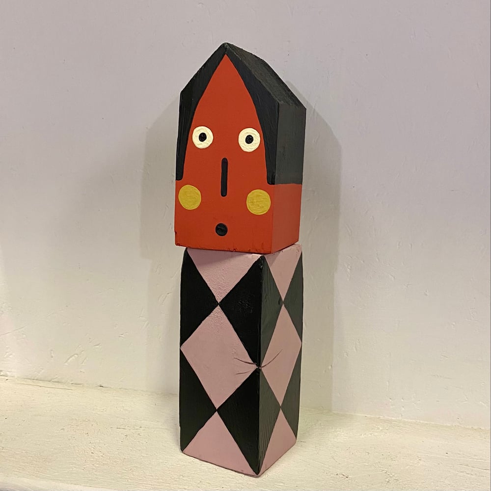 Peinture acrylique sur bois statuette en deux modules, hauteur = 29cm signée & datée / modèle unique frais de port inclus